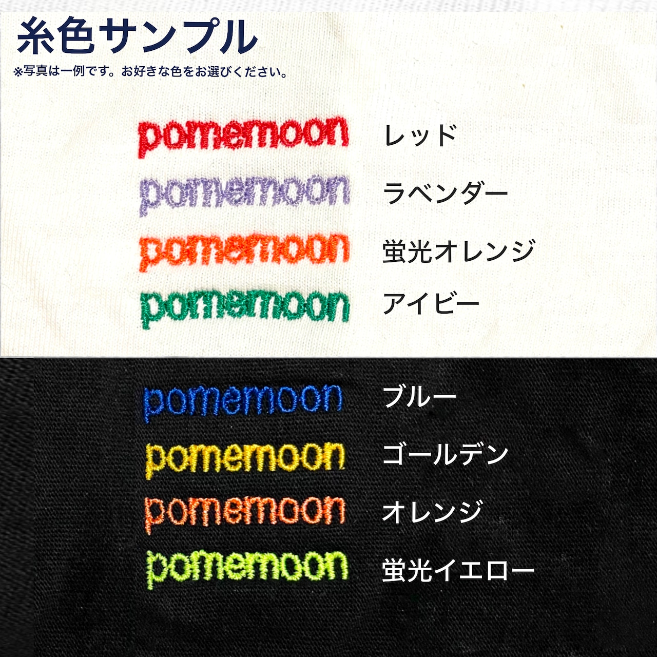 pomemoon文字ロゴが小さく入ったワンポイント刺繍のTシャツ。